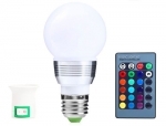 Żarówka E27 RGB to energooszczędny zamiennik standardowych żarówek żarnikowych. Żarówka posiada diodę wielokolorową RGB umożliwiającą uzyskanie dowolnego koloru. Pilot IR: Transmisja za pomocą podczerwieni pozwala na sterowanie żarówką z odległości do kilku metrów. Ponadto żarówka posiada szybkę zabezpieczającą powierzchnię Led.