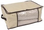 Pokrowiec wykonany z tworzywa. Z wygodnym suwakiem oraz przeźroczystym okienkiem umożliwiającym zobaczenie co znajduje się wewnątrz bez otwierania. Pokrowiec ułatwia segregowanie ubrań, pościeli i innych przedmiotów w szafach.