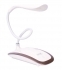 Nowoczesna, designerska lampka biurkowa LED. Wyposażona w dotykowy włącznik z 3- stopniową regulacją świecenia. Dołączony do zestawu akumulator zapewnia świecenie bez konieczności podłączania do zasilania. Możliwość ładowania lampki z gniazda USB np. z laptopa. Dzięki elastycznemu ramieniu lampkę łatwo regulować i ustawiać pod dowolnym kątem świecenia.