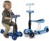 Duży podest i 3 kółka jak również wysokiej jakości łożyska podnoszą komfort i bezpieczeństwo jazdy. Uchwyty wyposażone są w absorbery pochłaniające energię uderzenia kierownicy o podłoże. Natomiast po zamontowaniu siedziska na jednej z dwóch wysokości pojazd zamienia się w chodzik dla najmłodszych. Można powiedzieć, że hulajnoga "rośnie" wraz z Twoją pociechą! Siedzonko mozna wyregulować w bardzo prosty sposób
